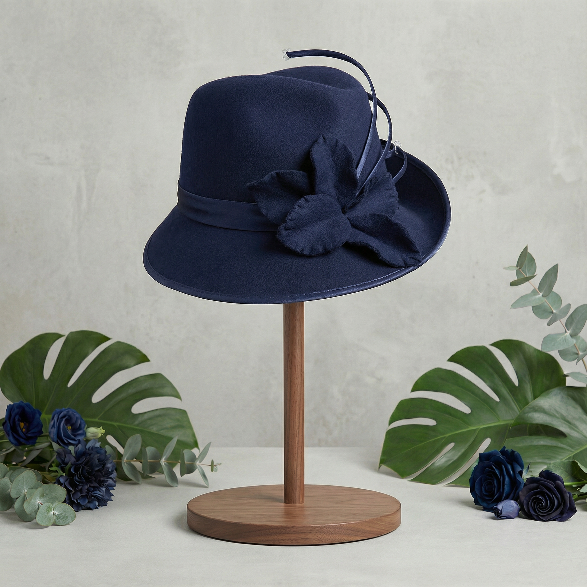 Navy wool hat with wands
